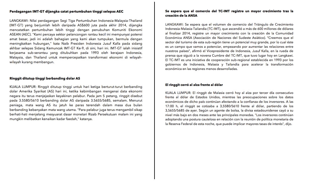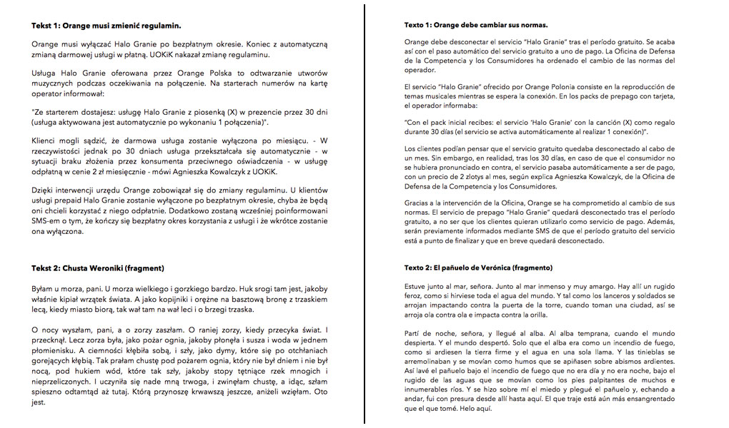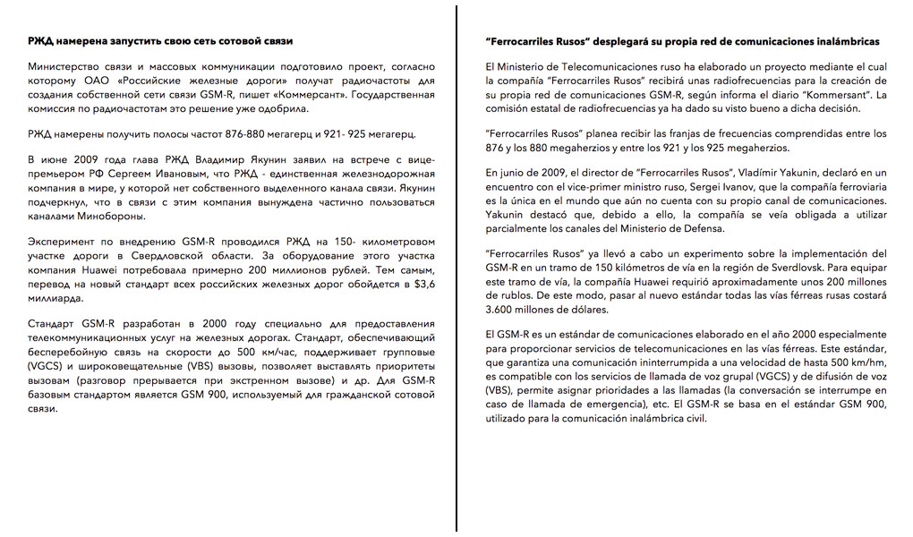 Ofrecemos a continuación una muestra de pequeños fragmentos de textos traducidos al español desde nuestros diversos idiomas de trabajo. Por motivos de confidencialidad, los textos originales no forman parte de encargos de clientes y han sido obtenidos de fuentes de acceso público.