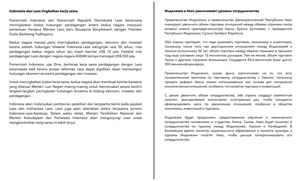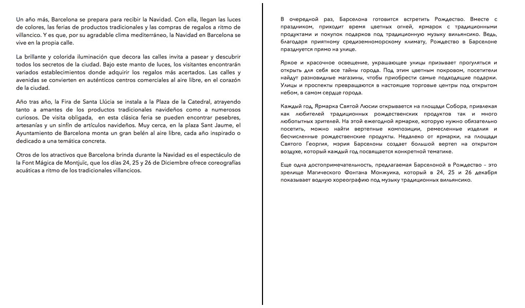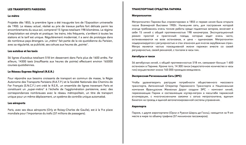 В этом разделе мы предоставляем примеры перевода в форме маленьких отрывков текстов, переведенных нами. По соображениям конфиденциальности, оригинальные тексты не являются заказами клиентов и были доставлены из общедоступных источников.